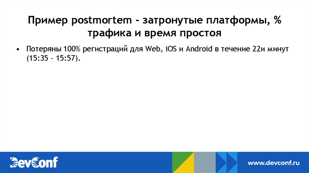 Пример postmortem - затронутые платформы, %трафика и время простоя