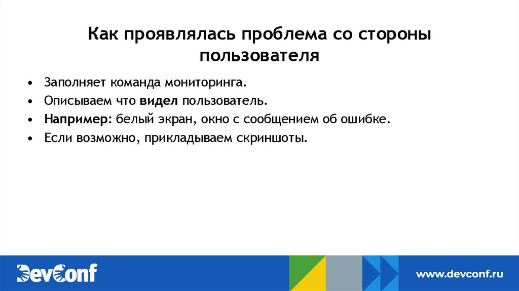 Пример postmortem - как проявлялась проблема состороны пользователя