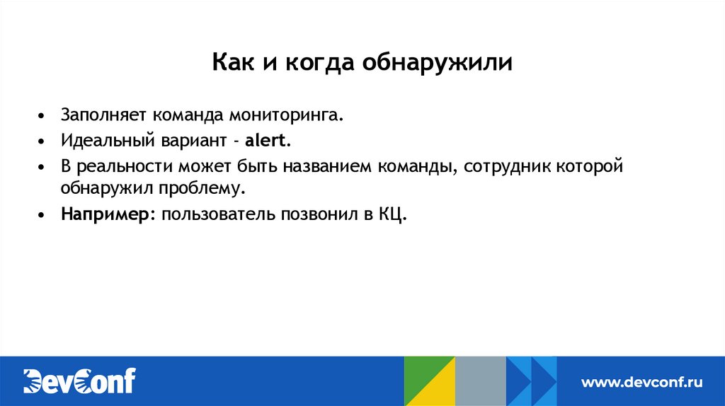 Как и когда обнаружили• Заполняет команда мониторинга.