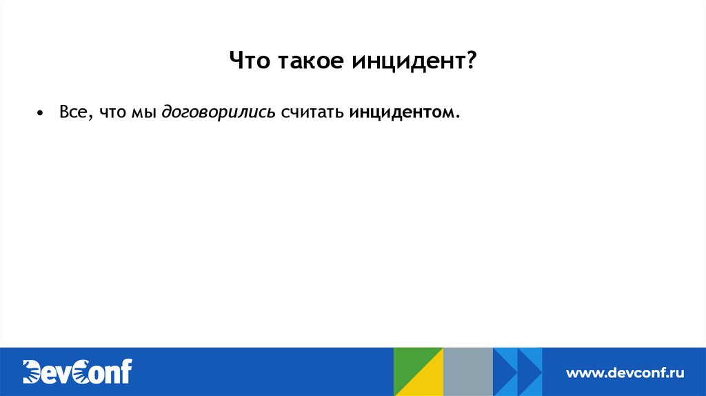 Что такое инцидент?• Все, что мы договорились считать инцидентом.