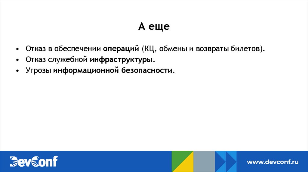 А еще• Отказ в обеспечении операций (КЦ, обмены и возвраты билетов).