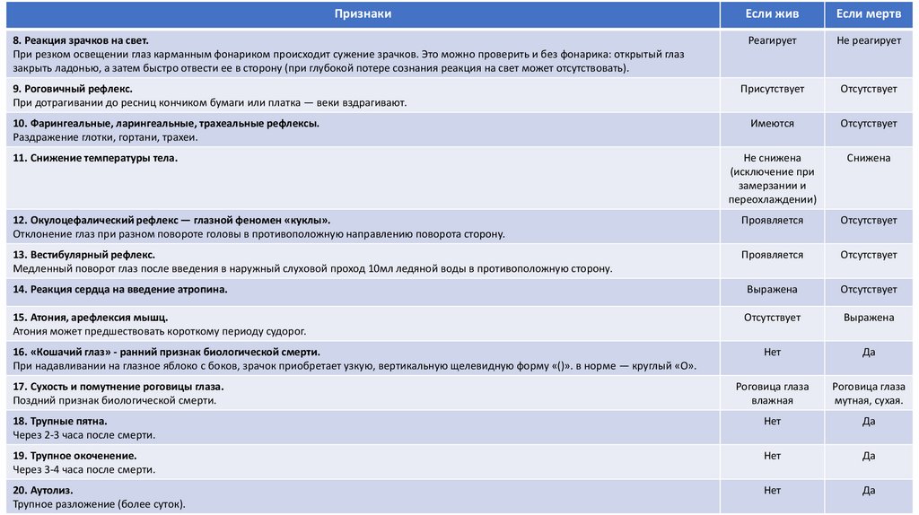 - степень тяжести состояния: наличие (отсутствие) сознания, реакция зрачков на свет, пульс,