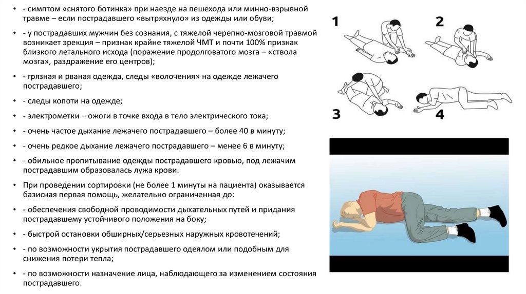 Врач, проводящий сортировку, должен оценить степень угрозы для жизни пораженного в