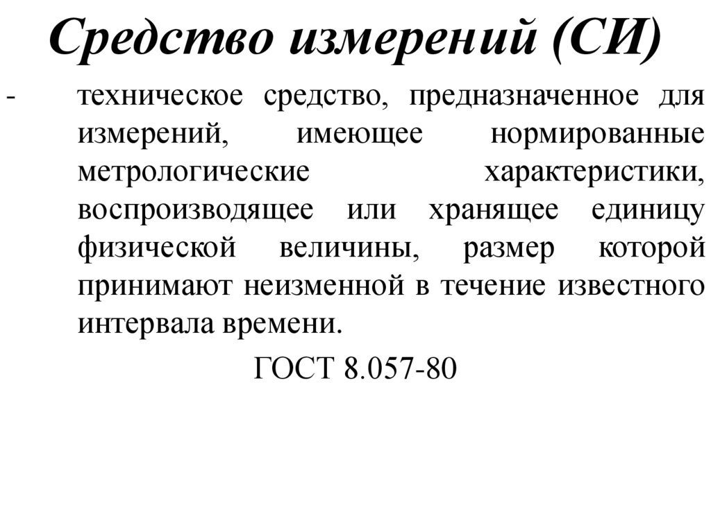 • Средством измерений (СИ) называют техническоесредство (или их комплекс), используемое при
