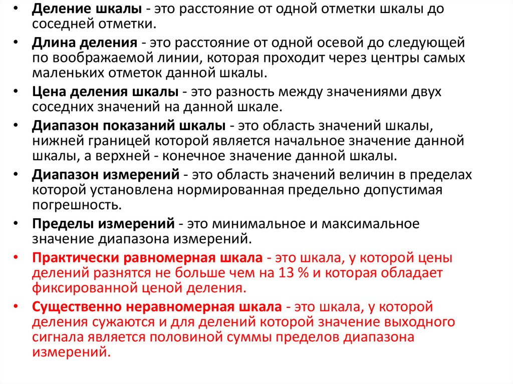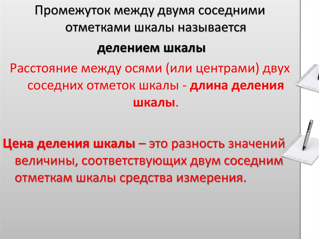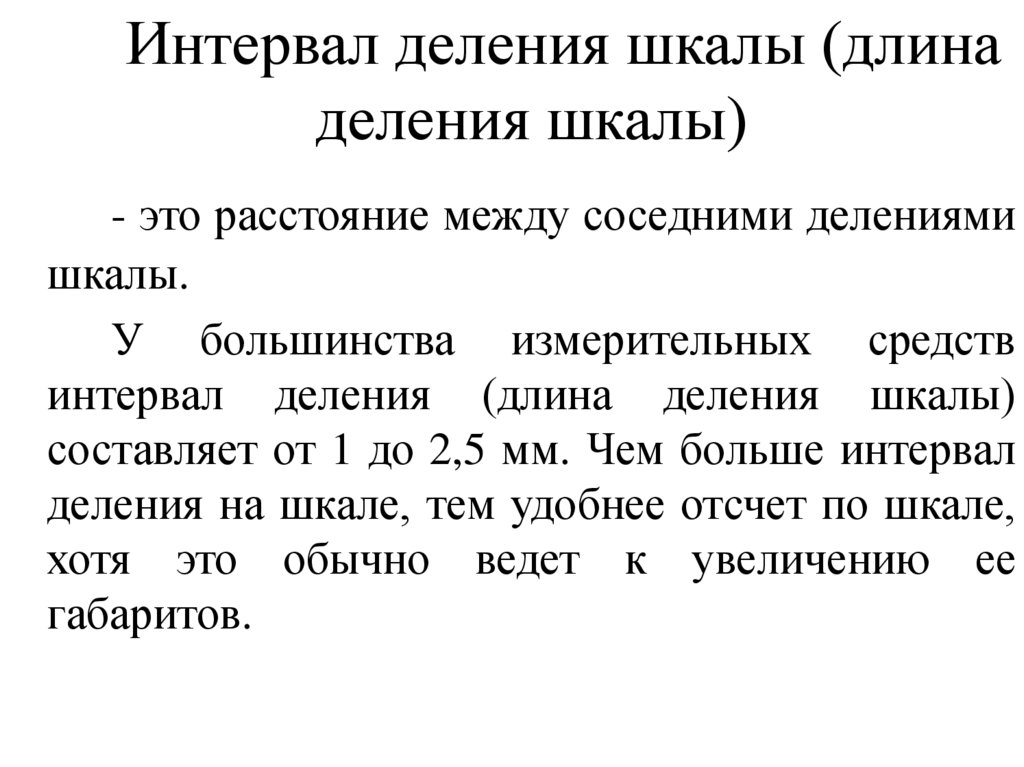 • Деление шкалы - это расстояние от одной отметки шкалы дососедней отметки.
