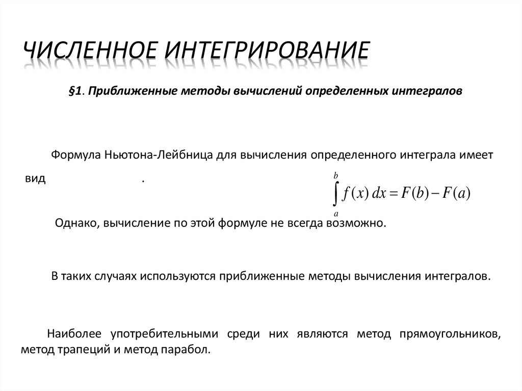 ЧИСЛЕННОЕ ИНТЕГРИРОВАНИЕ§1. Приближенные методы вычислений определенных интегралов