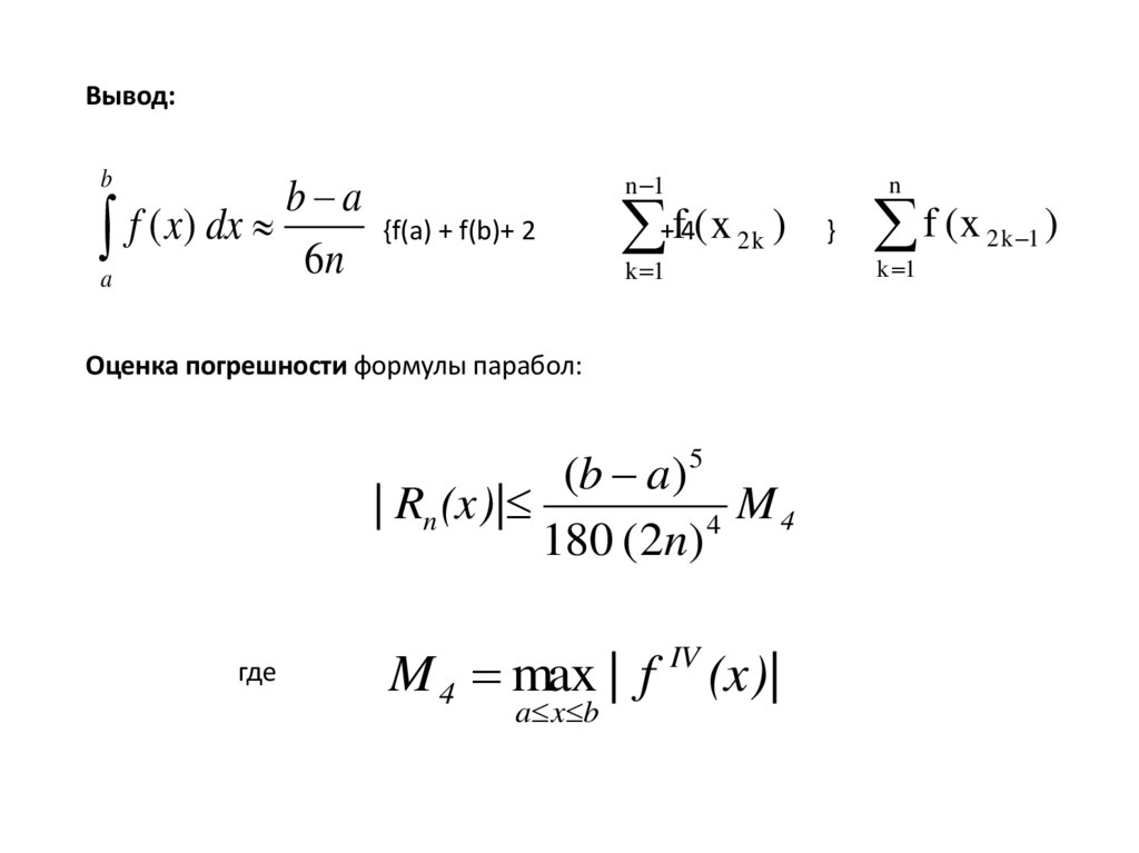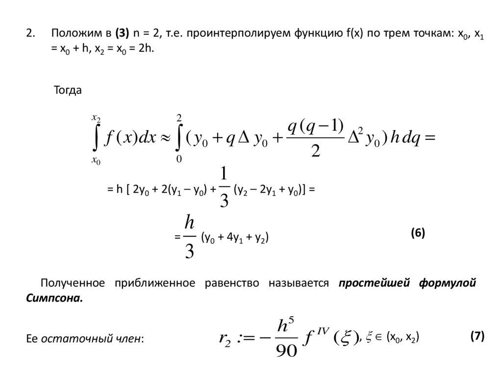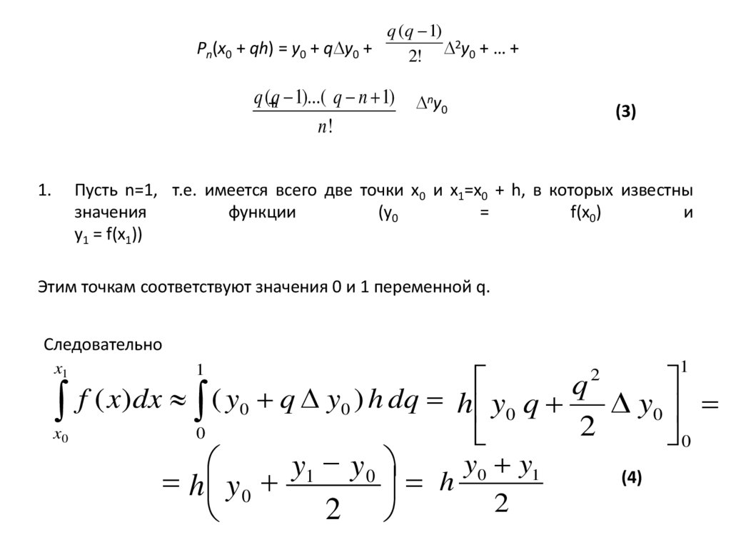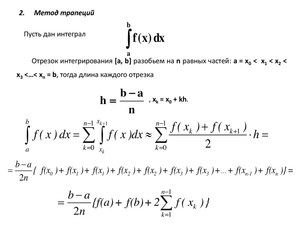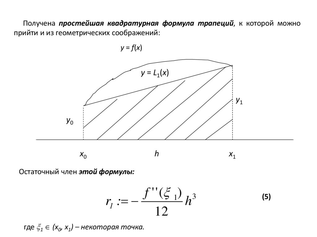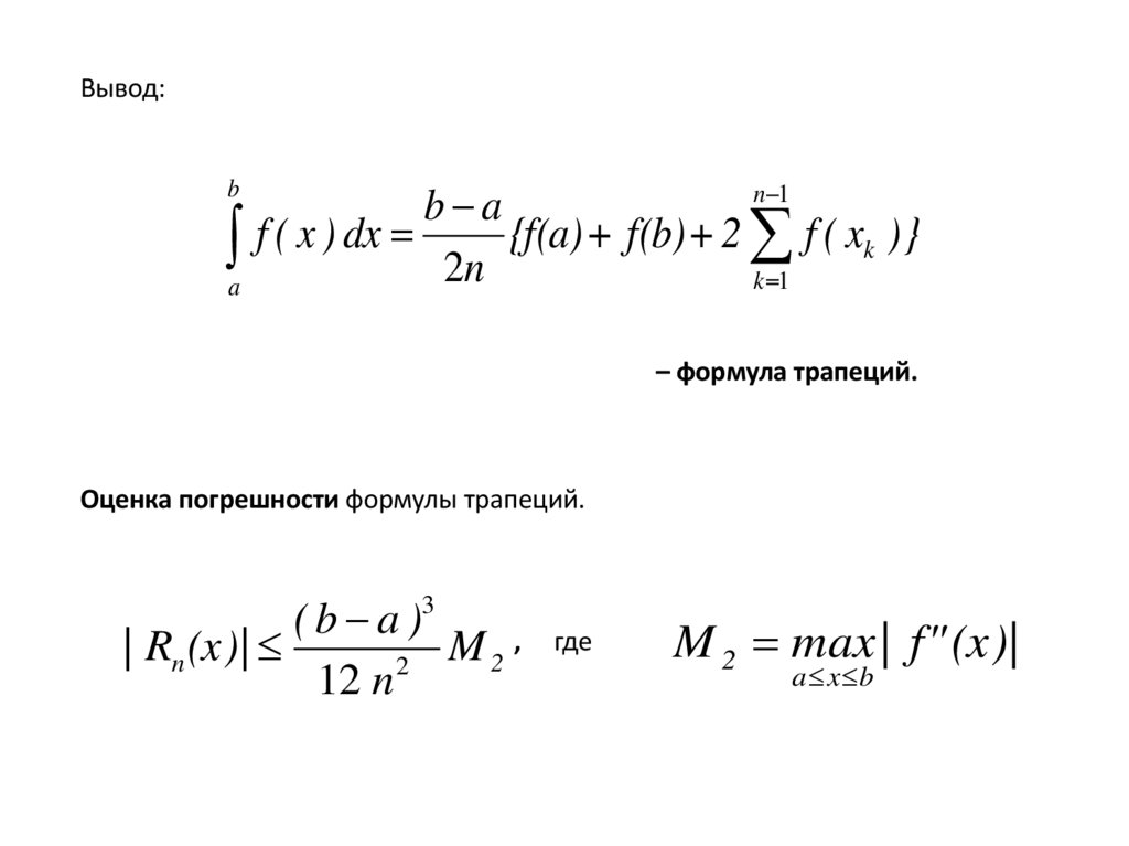 Получена простейшая квадратурная формула трапеций, к которой можноприйти и из геометрических соображений: