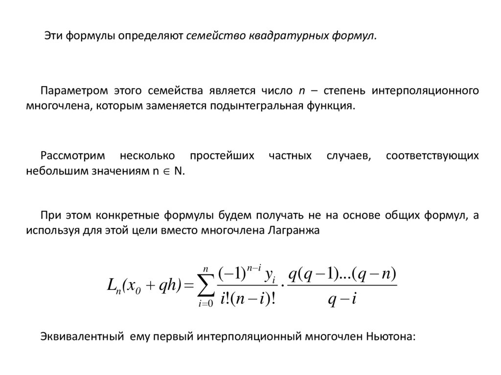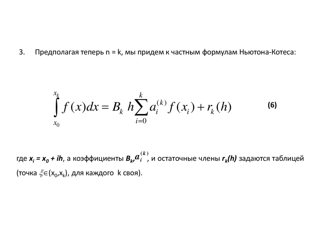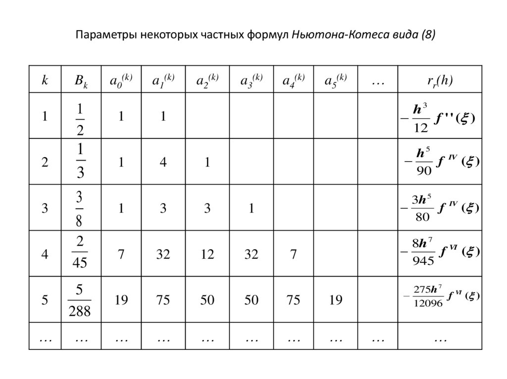 3.Предполагая теперь n = k, мы придем к частным формулам Ньютона-Котеса: