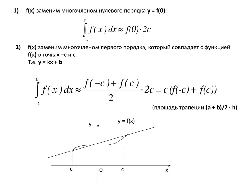 f(x) заменим многочленом первого порядка, который совпадает с функцией