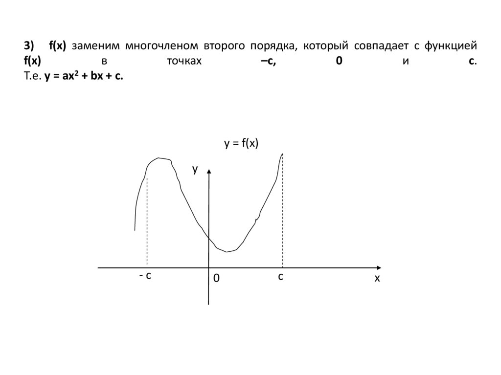 3) f(x) заменим многочленом второго порядка, который совпадает с функциейf(x)