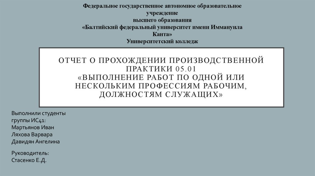 1. Отчет о прохождении производственной практики 05.01 «Выполнение работ по одной или нескольким профессиям рабочим, должностям
