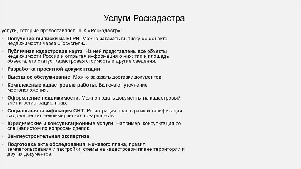 Услуги Роскадастрауслуги, которые предоставляет ППК «Роскадастр»: