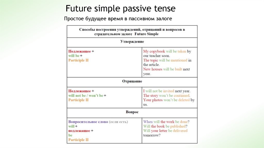 Future simple passive tenseПростое будущее время в пассивном залоге