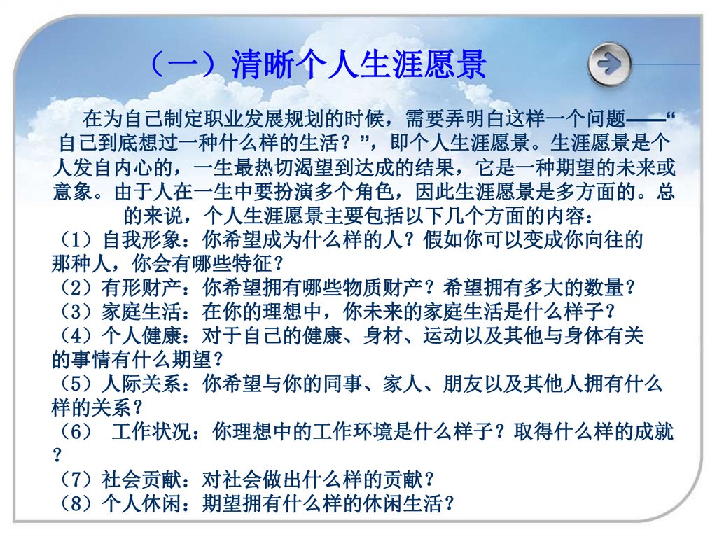 的来说 个人生涯愿景主要包括以下几个方面的内容