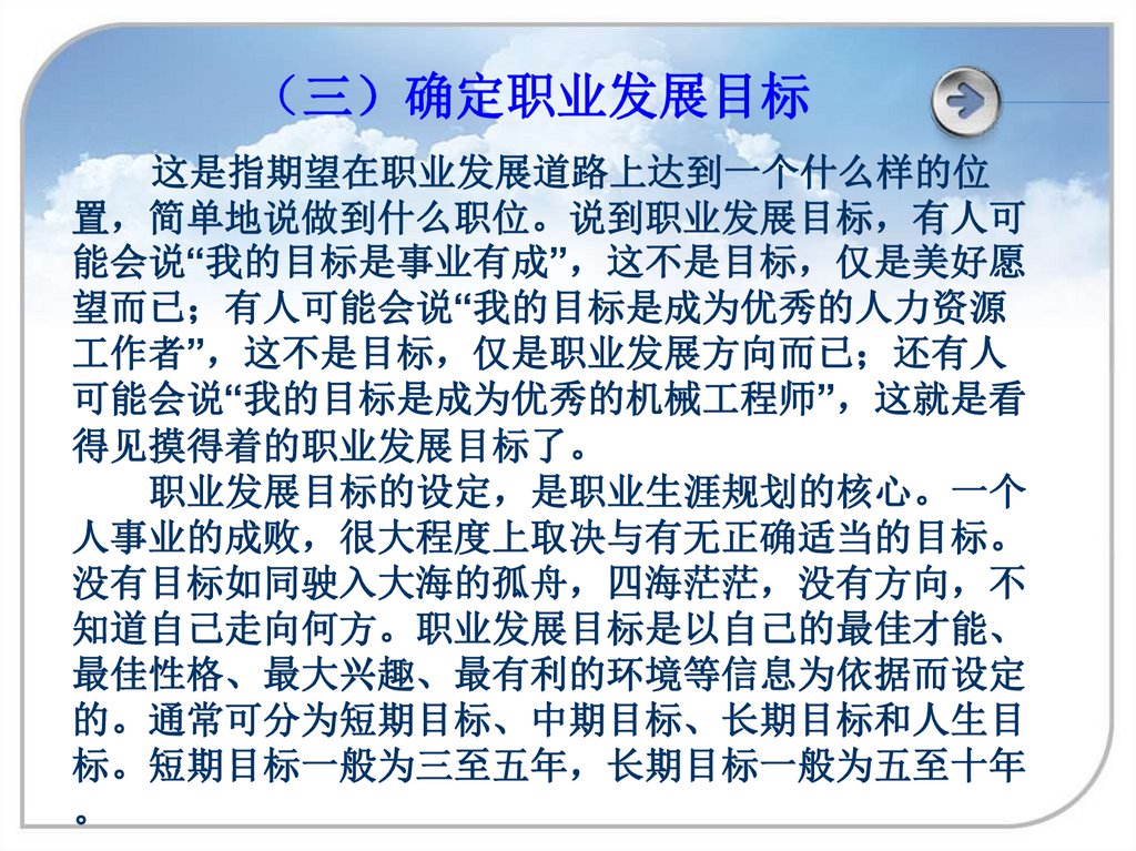 三 确定职业发展目标这是指期望在职业发展道路上达到一个什么样的位