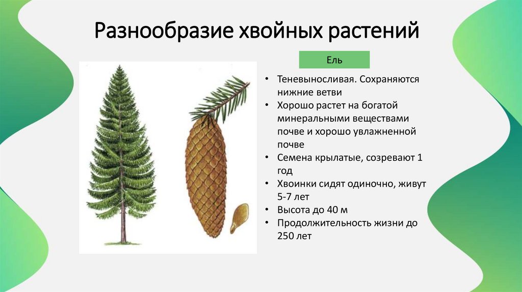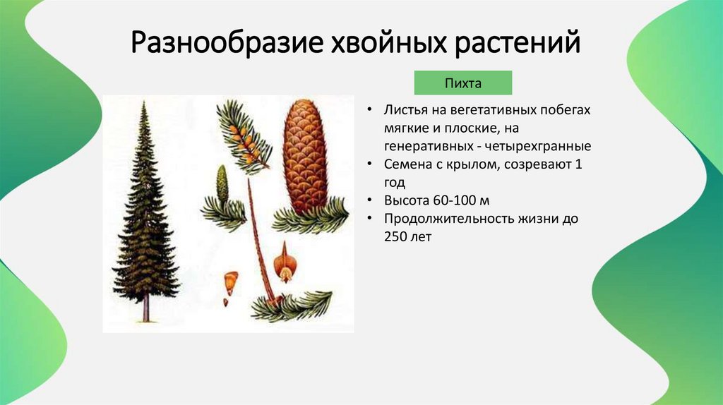 • В России хвойные леса образованы разными видами ели, пихты, сосны и