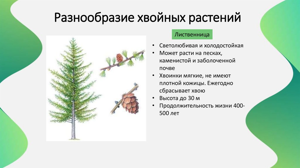 • Листья узкие, игольчатые – хвоя. Унекоторых видов листья чешуйчатые