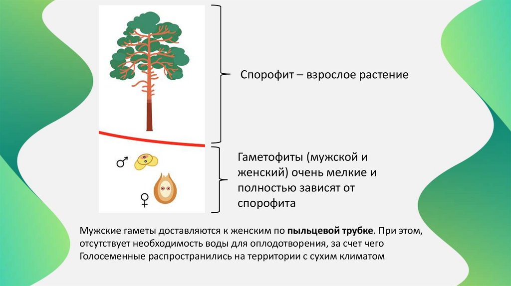 Спорофит – взрослое растениеГаметофиты (мужской и