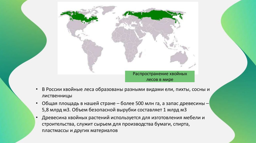 • Общая площадь в нашей стране – более 500 млн га, а запас древесины –