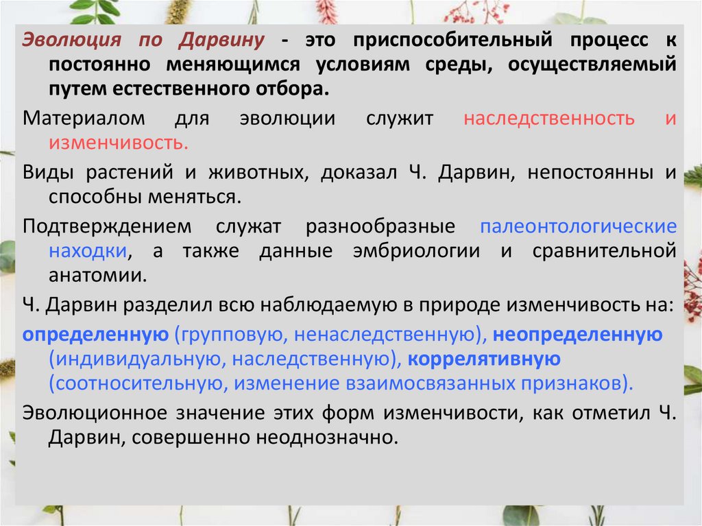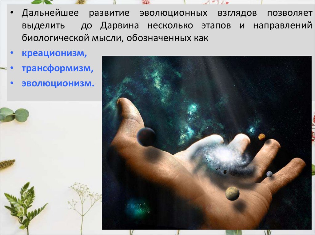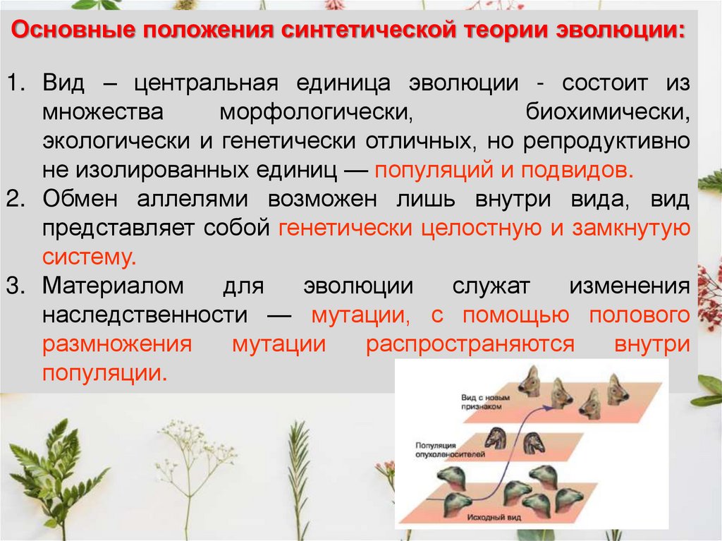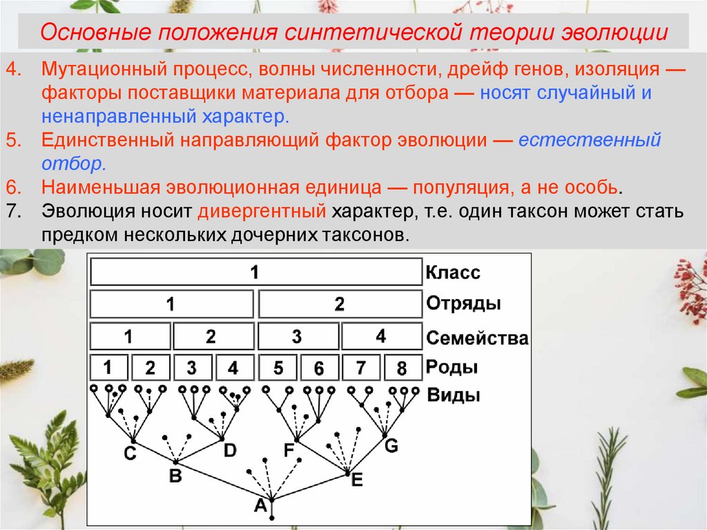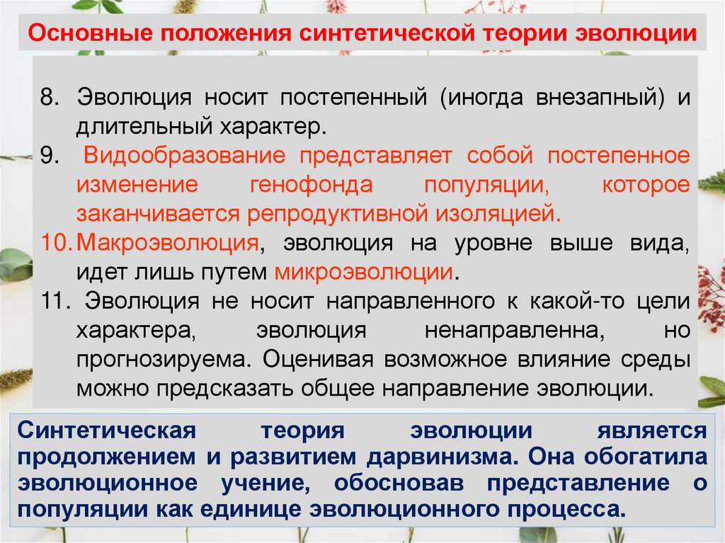 • Дальнейшее развитие эволюционных взглядов позволяетвыделить