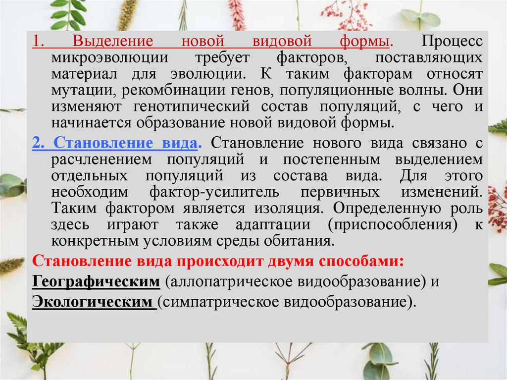 микроэволюционных факторов и