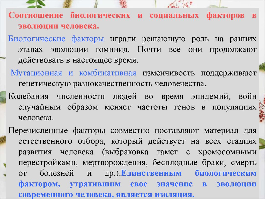 развитие стало определяться не столько биологическими факторами, сколько