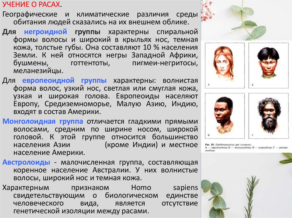 УЧЕНИЕ О РАСАХ.Географические и климатические различия среды