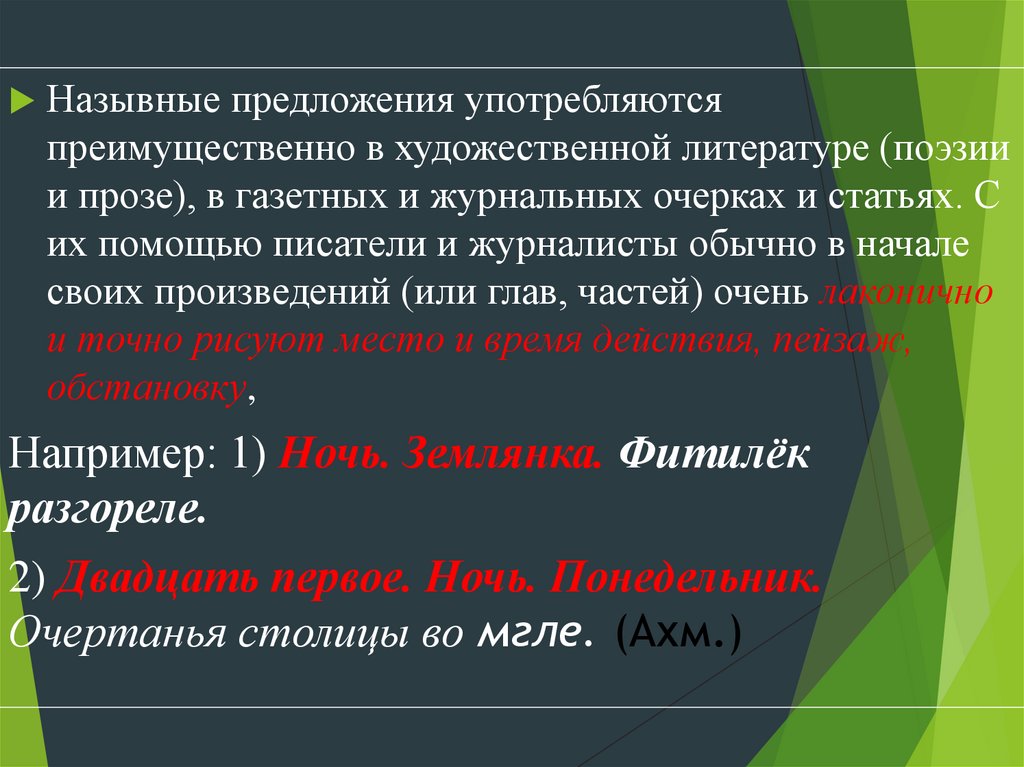 Назывные предложения употребляютсяпреимущественно в художественной литературе (поэзии
