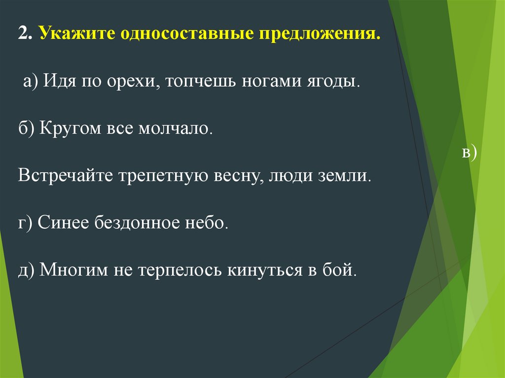 2. Укажите односоставные предложения.а) Идя по орехи, топчешь ногами ягоды.