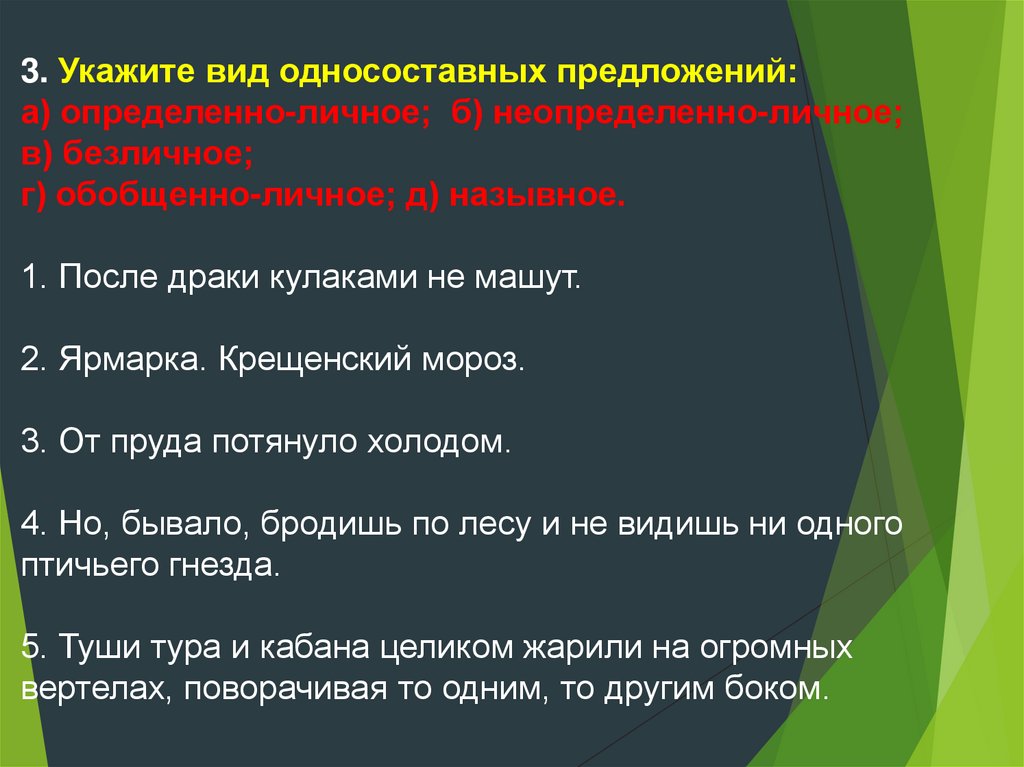 3. Укажите вид односоставных предложений:а) определенно-личное; б) неопределенно-личное;