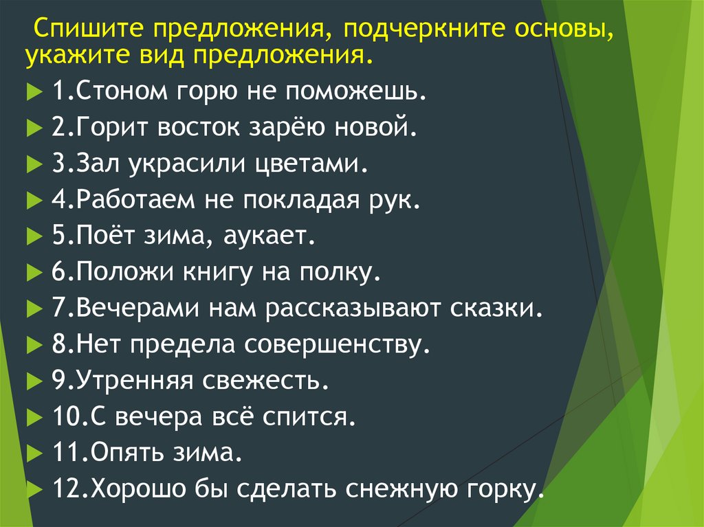 Спишите предложения, подчеркните основы,укажите вид предложения.