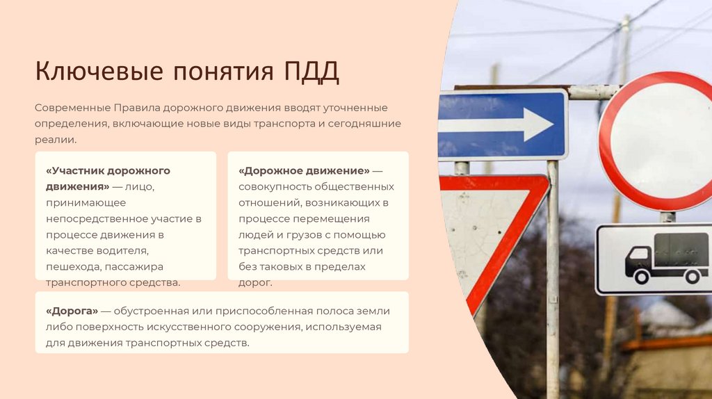 Ключевые понятия ПДДСовременные Правила дорожного движения вводят уточненные