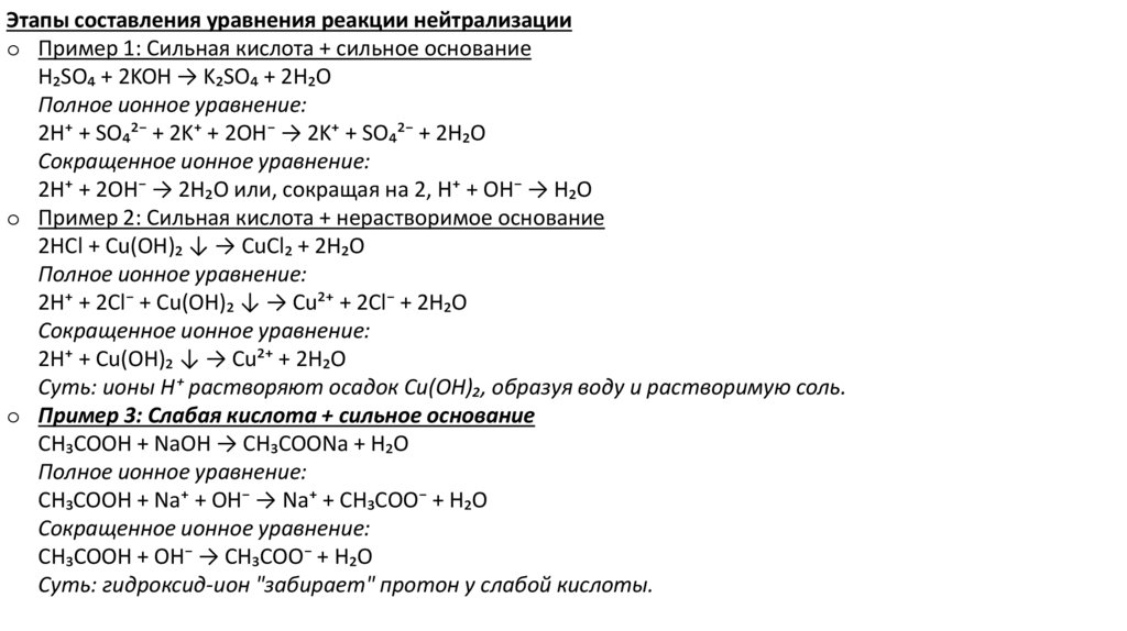Сокращённое ионное уравнение: H⁺ + OH⁻ → H₂O