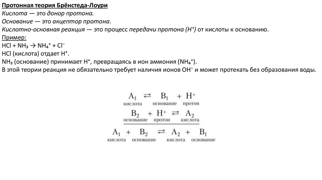 Протонная теория Брёнстеда-ЛоуриКислота — это донор протона.