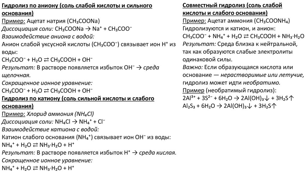 Слабый (NH₄⁺, Сильный (Cl⁻,