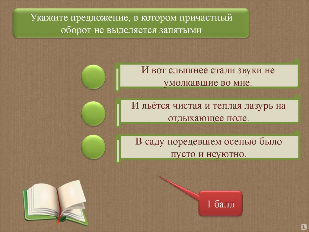 Укажите предложение, в котором причастныйоборот не выделяется запятыми