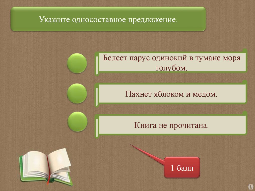 Укажите односоставное предложение.Белеет парус одинокий в тумане моря