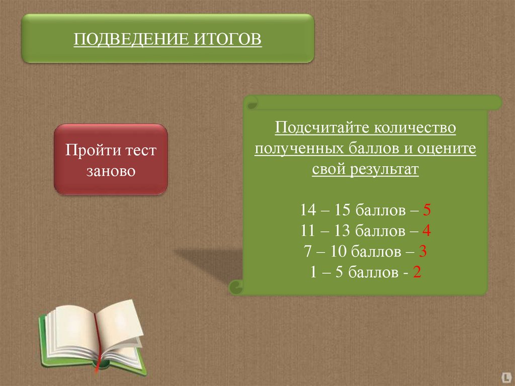 ПОДВЕДЕНИЕ ИТОГОВПройти тест