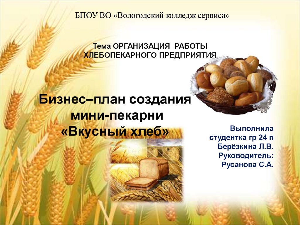 • Продукция будет выпускаться в мини-пекарне «Вкусныйхлеб», находящейся в г. Вологда ул. Чернышевского 49. В