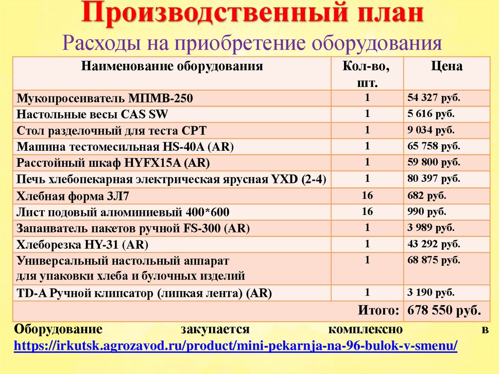 Производственные мощностинашей мини-пекарни составят :