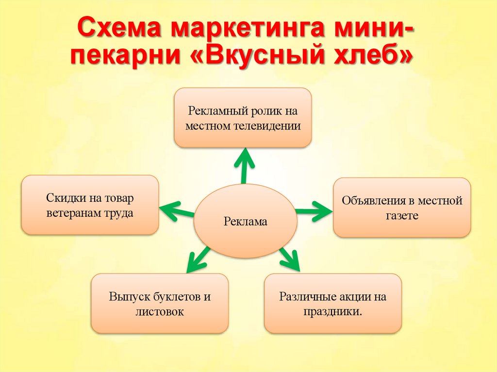 Схема маркетинга минипекарни «Вкусный хлеб»Рекламный ролик на
