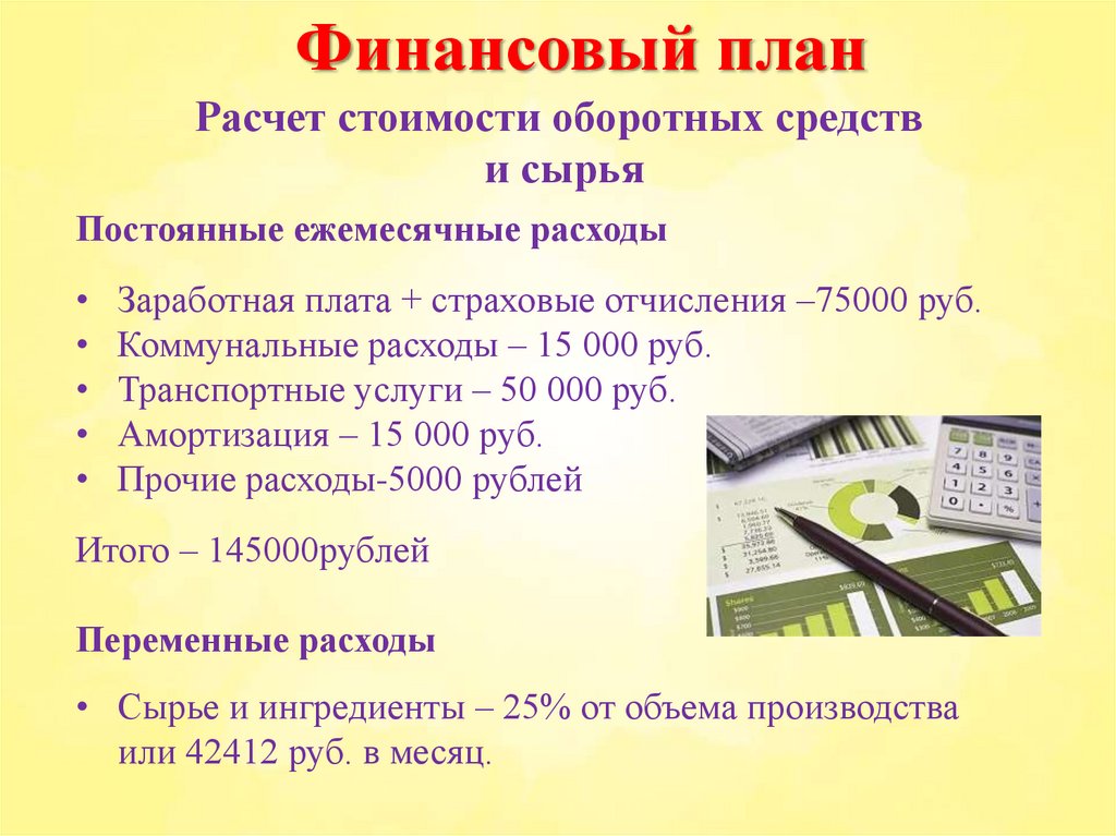 Финансовый планРасчет стоимости оборотных средств