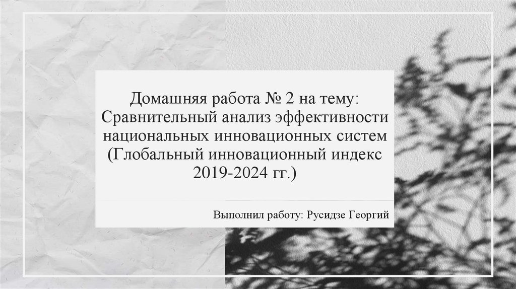 1. Домашняя работа № 2 на тему: Сравнительный анализ эффективности национальных инновационных систем (Глобальный инновационный