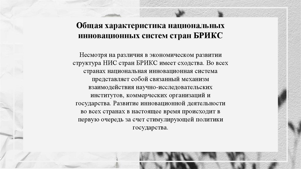 Общая характеристика национальныхинновационных систем стран БРИКС
