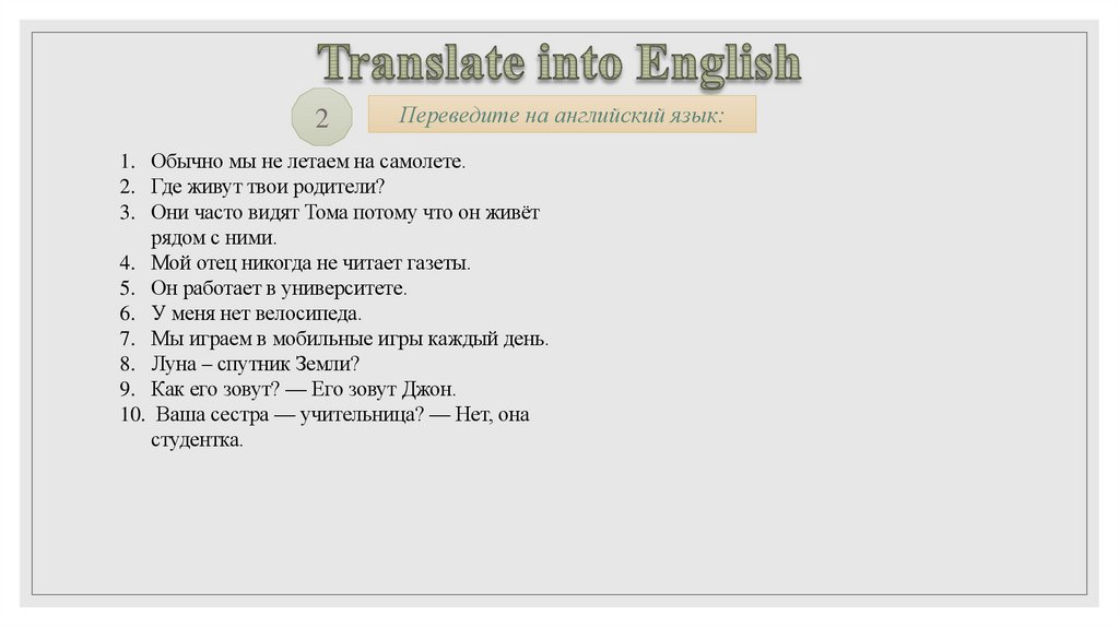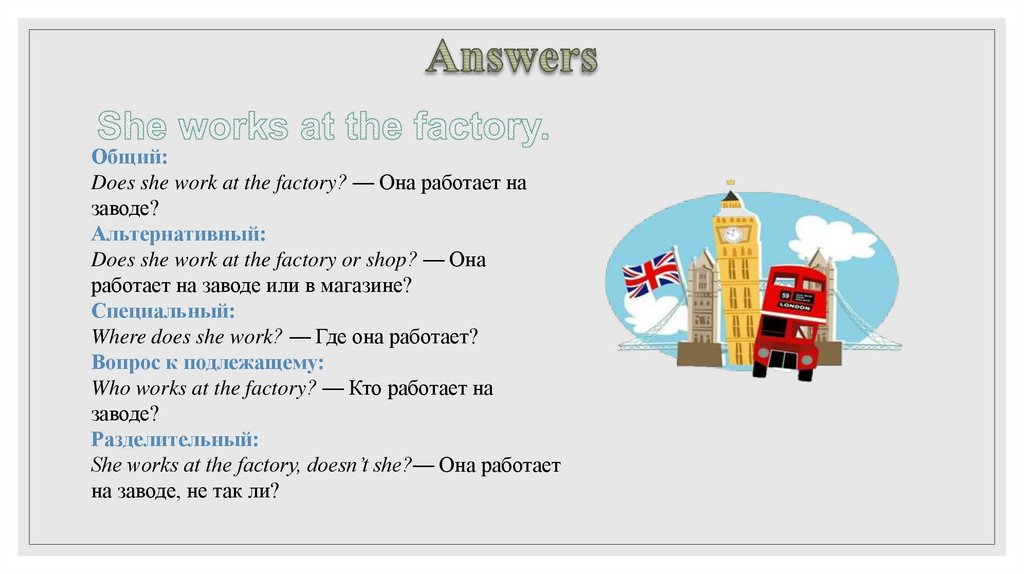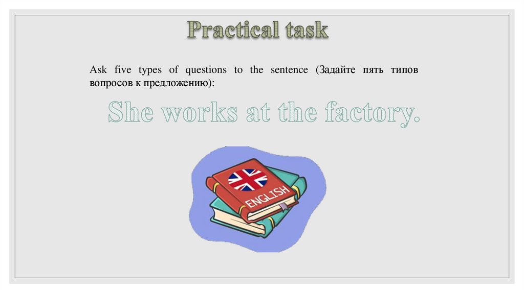Ask five types of questions to the sentence (Задайте пять типоввопросов к предложению):