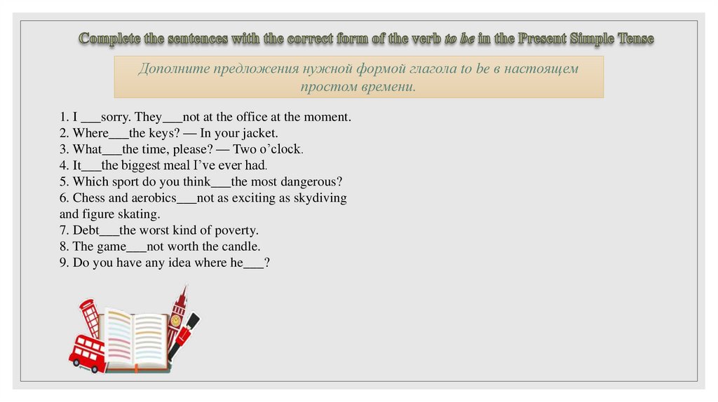 Дополните предложения нужной формой глагола to be в настоящемпростом времени.