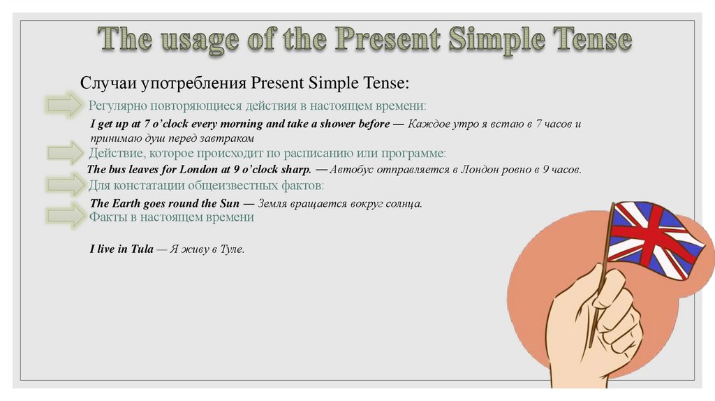 Случаи употребления Present Simple Tense:Регулярно повторяющиеся действия в настоящем времени: