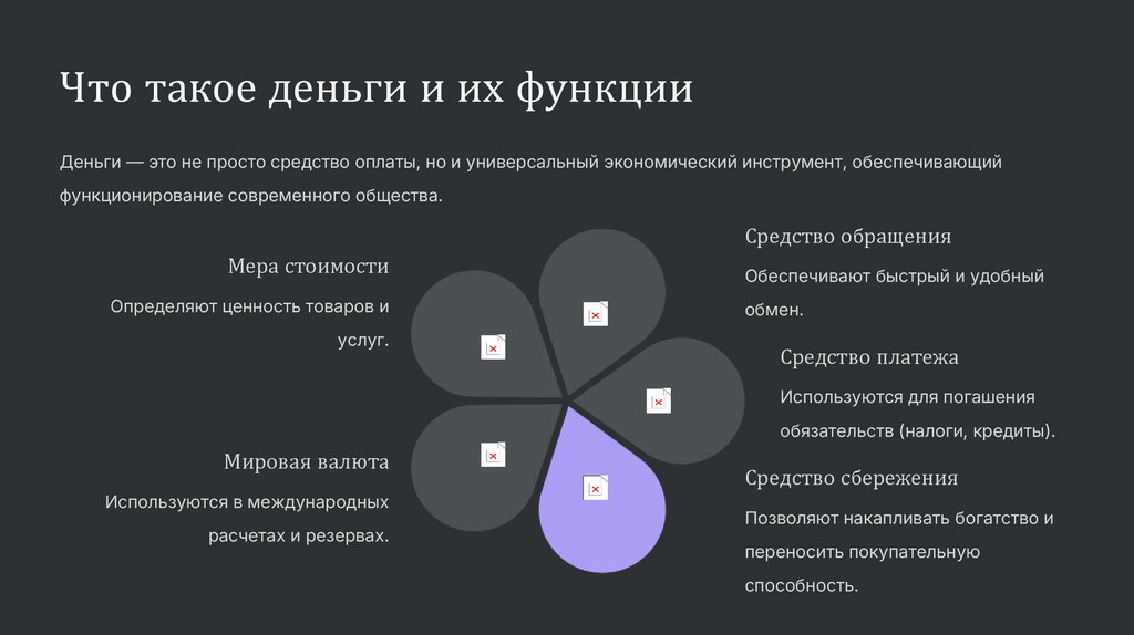 Что такое деньги и их функцииДеньги — это не просто средство оплаты, но и универсальный экономический инструмент, обеспечивающий