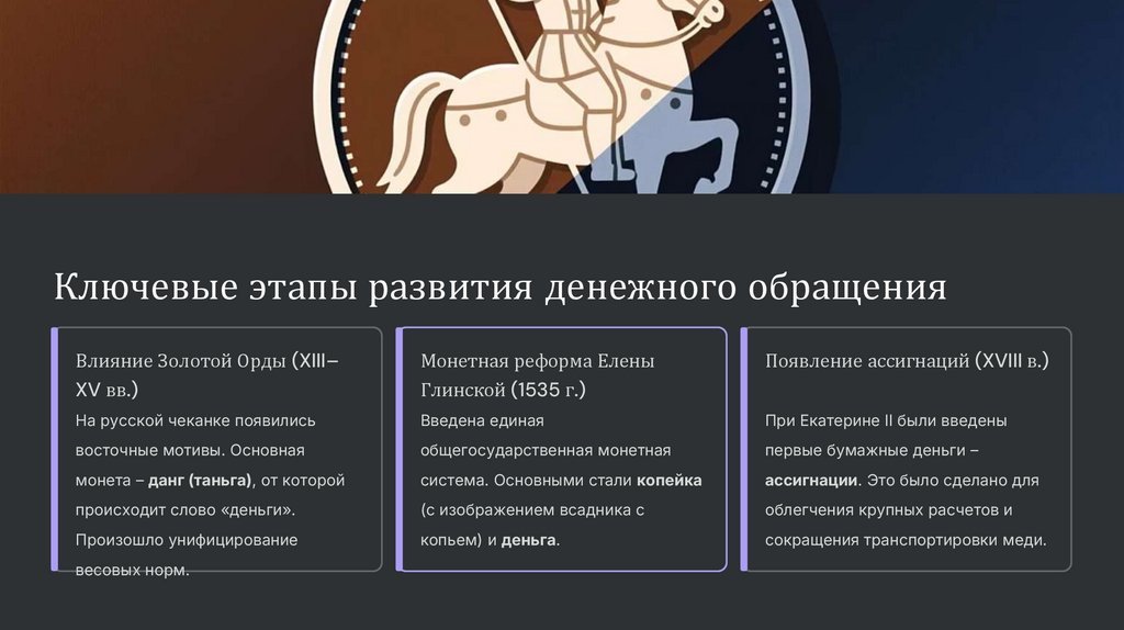Ключевые этапы развития денежного обращенияВлияние Золотой Орды (XIII–