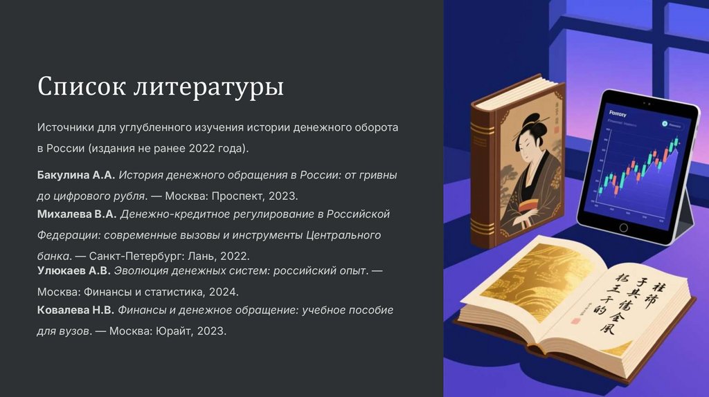 Список литературыИсточники для углубленного изучения истории денежного оборота